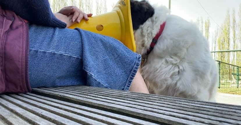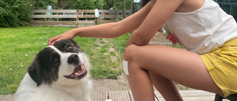 Estra is mijn trouwe co-therapeut: een zachtaardige, nieuwsgierige en sociale hond die aanvoelt wanneer iemand een extra beetje steun nodig heeft. Ze oordeelt niet, verwacht niets. Ze is er gewoon. Kinderen voelen zich vaak sneller op hun gemak dankzij haar, terwijl jongeren en volwassenen haar ervaren als een zachte tussenpersoon om emoties te benoemen of even tot rust te komen.